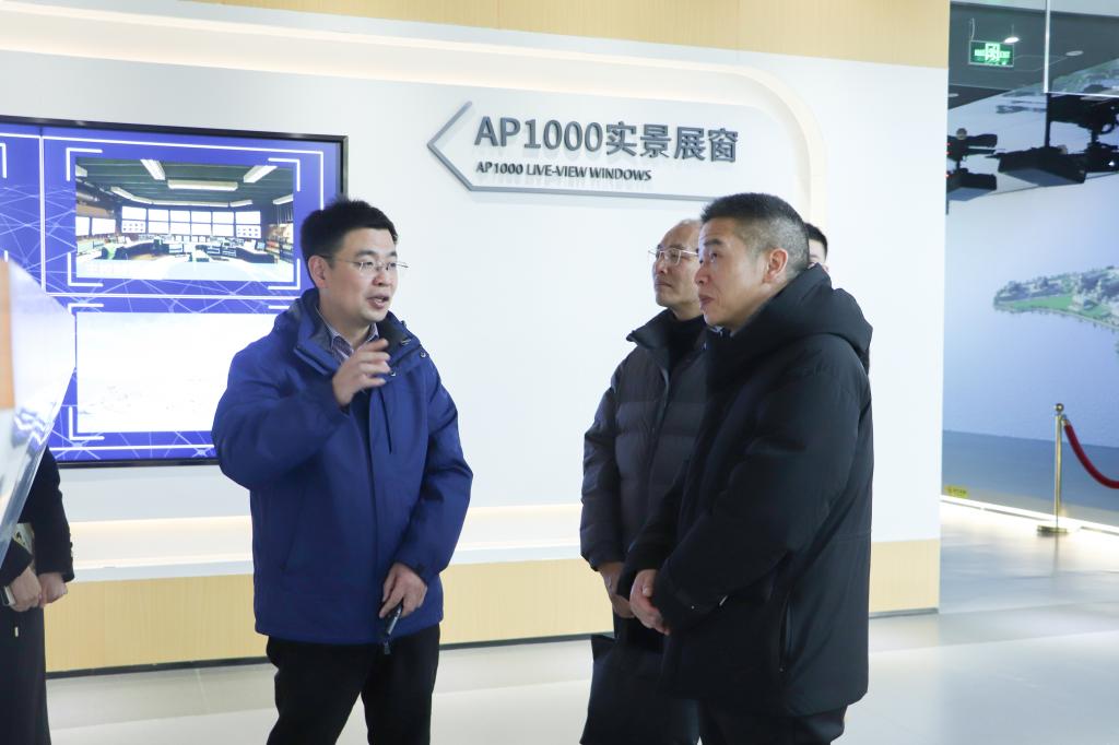 公司党委一行参观了核电公众科普展厅、核电厂区,三门核电有限公司党建工作处处长、党支部书记项京锋全程陪同介绍。三门核电站是我国首个采用第三代压水堆核电技术的核电项目,2003年5月15日,习近平深入三门调研海洋经济时,考察了牛山火电厂址、核电建设基地、长湾塘养殖场,充分肯定了三门的发展,勉励三门县要充分发掘水产、电力、港口等资源优势,进一步加快经济社会的发展步伐。“跟随总书记足迹”,同志们了解三门核电站的选址、招标和建造历程,对三门核电的厂区规划、不同厂房功能、安全事故应急处理方案等有了更加深入的了解。