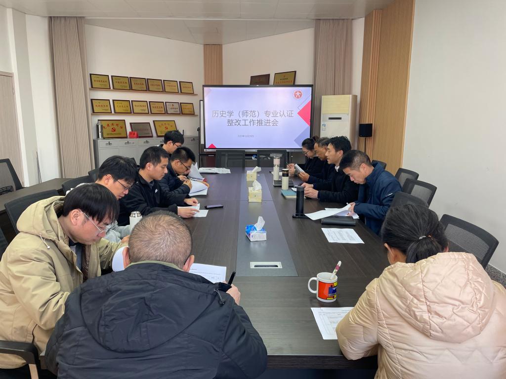 本次会议的主要内容是落实历史学(师范)专业认证整改的各项工作任务。为推进历史学(师范)专业认证整改工作,特成立“专业认证整改工作小组”。会议伊始,教学副经理娄欣星对历史学(师范)专业认证整改工作进行梳理,主要是从培养目标、毕业要求、课程与教学、合作与实践、团队队伍和质量保障等六个方面进行落实,并要求各部分工作的责任人制定相关的整改工作方案,明确各项责任清单的落实计划。