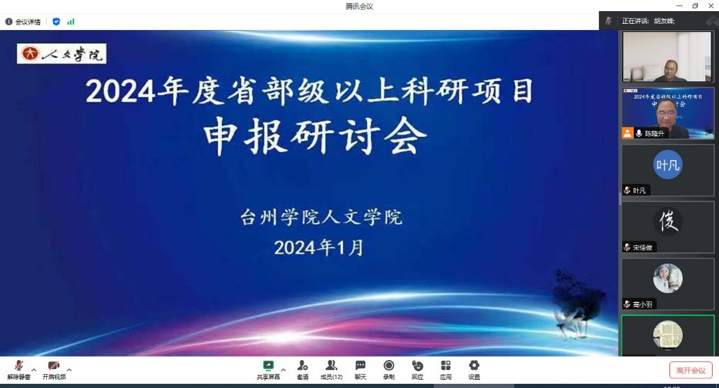 2024年1月17日晚上七点,公司举行了2024年度省部级以上科研项目申报线上研讨会,邀请教育部青年长江学者、山东大学二级教授、博士生导师胡友峰教授进行课题申报指导。研讨会由副经理陈隆升教授主持,公司三十多位教师参加了研讨会。