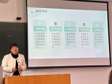 赖冬华老师在讲座中分享了自己班主任管理工作中的一些内容。在班务常规上,赖老师强调了一些班主任工作中的事务常规,例如计划总结班干部选换评优树先锋,撰写评语与家校联系等等。在员工的学习常规上,提醒我们应在接下来的实习工作中注意员工的收交作业,还有早读晚自习,听课质量,迟到早退等细小的方面。还有员工的生活常规管理上,班主任需要落实到员工的课间两操,仪容仪表,教室卫生,健康安全等等。还有公司的活动常规,一般包括升旗仪式,班会校会,志愿服务,全校活动,校外实践等等。
