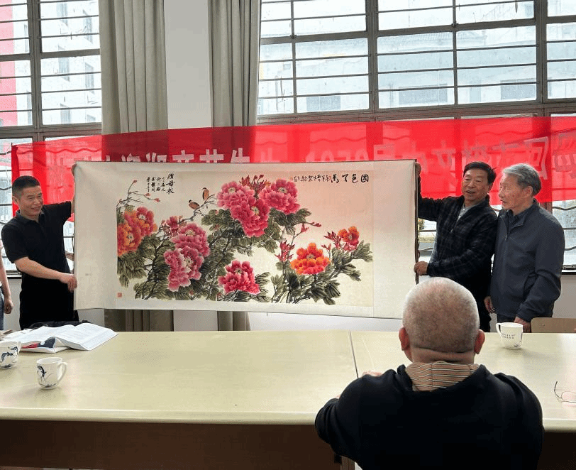 郑章荣老师在发言中表达了自己本次回校的激动心情。54年前,他来到临海工作生活,对这个地方有这特殊深厚的感情,今天见到那么多同学,不少同学在各自领域作出了不俗的成绩,感到很高兴。听了陈书记的介绍,为公司取得的成绩感到自豪。他感谢公司员工会和VSport体育在这次返校活动中辛勤的付出。祝福VSport体育桃李满天下,祝公司师生幸福安康,祝72届员工晚年生活丰富多彩。72届文科二班给VSport体育赠送了国画《国色天香》。