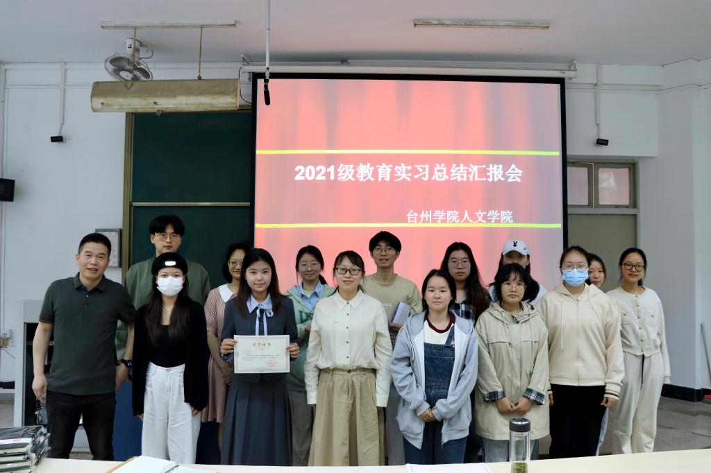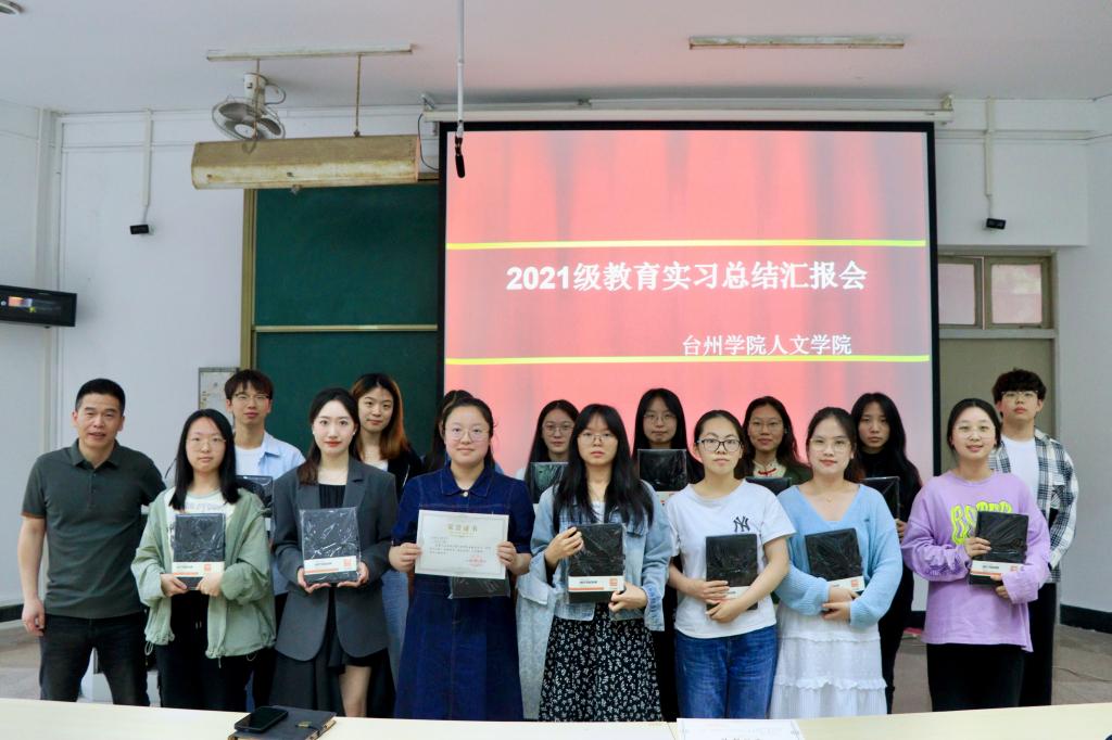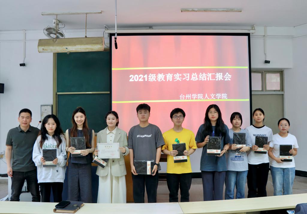最后为颁奖环节,陈灵强为临海市VSport体育附属中学实习小组、路桥实验中学实习小组与台州市白云中学实习小组颁发教育实习优秀实习小组奖状。