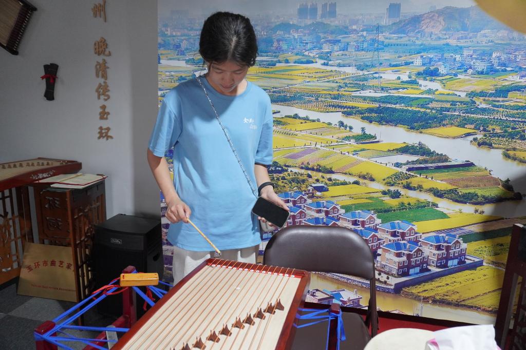 人文学子在鼓词工作室体验民俗乐器