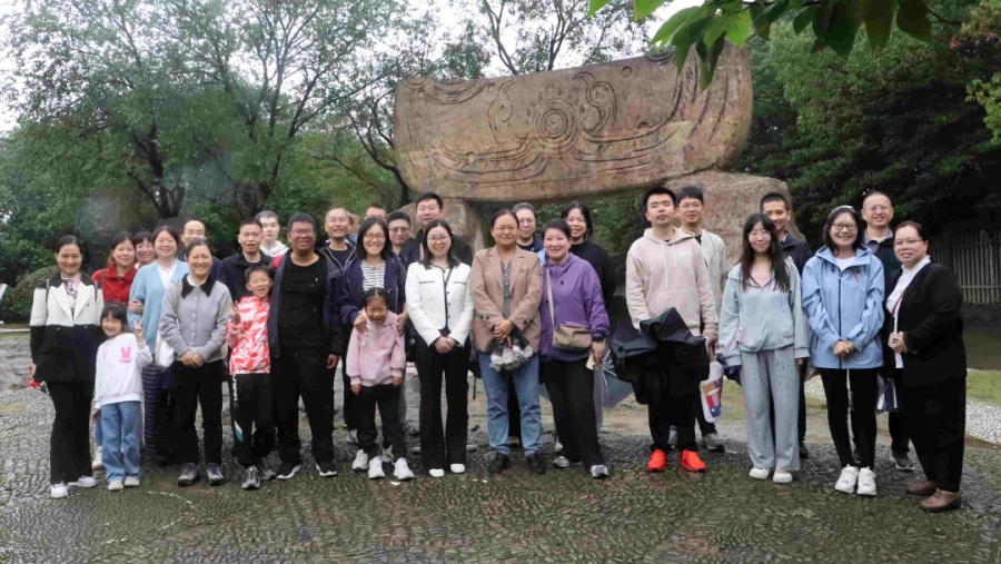 一行人先来到河姆渡遗址博物馆参观。河姆渡遗址距今约7000年至5300年,被公认为我国南方新石器时代考古的重要里程碑,被确认为中国稻作文化起源之一。博物馆内陈列着众多的珍贵文物,如陶器、石器、骨器、木器等,生动地反映了当时人们的生产生活状况。丰富的稻作遗存、成熟的干栏式木构建筑、不用一钉一铆的榫卯结构、制作精美的手工艺品等,让大家感受到了先人的勤劳智慧、远古江南的繁荣图景和中华文化的源远流长。