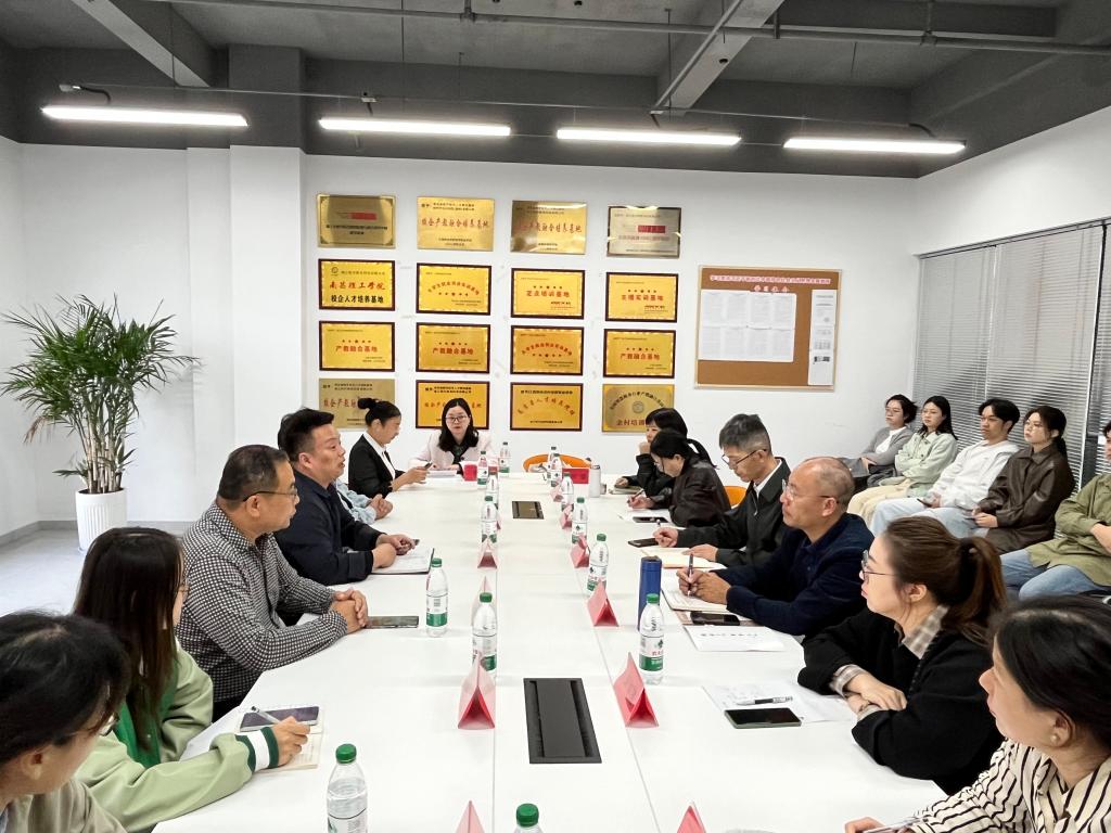 林军辉介绍了公司和公司相关情况,就校地共建融合、员工就业等进行了交流,娄欣星就VSport体育专业建设、员工实习实践等作了介绍和交流。