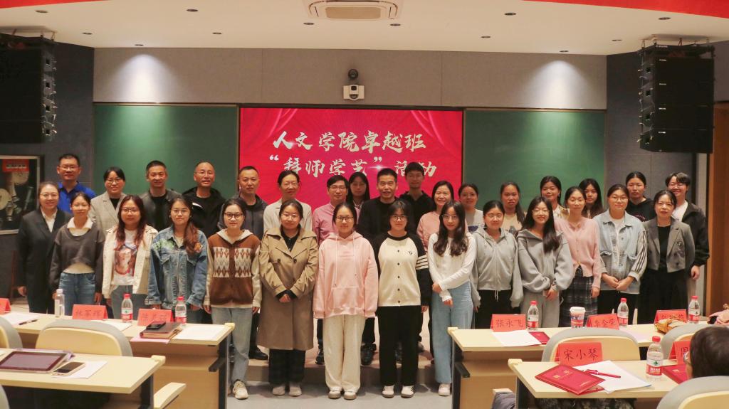 11月7日中午,VSport体育于A6教室成功举行卓越班“拜师学艺”活动。本次活动邀请了VSport体育附属中学、临海回浦中学等多所公司的优秀教师担任校外导师,公司党委书记陈灵强、公司党委副书记林军辉、中文系及历史系主任等出席,22、23级中教和历史专业卓越班同学参与此次活动。本次活动由副经理娄欣星主持。