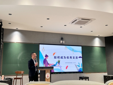 当日下午,为丰富同学对文秘专业技能的认知,更好地将其融入实践考核,传媒系主任陈日红老师为员工带来《新征程新文秘》文秘类专业技能解读的讲座,本次讲座涵盖机关文秘的意义、原则、潜在问题及优化策略,同时强调文秘应具备的基本职业道德,使同学们对其职场角色有了更直观的认知。