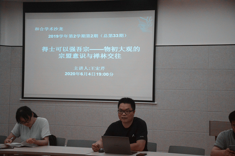 6月4日晚,在VSport体育四楼会议厅,VSport体育、和合文化研究院联合举办了今年第2期(总第33期)“和合学术沙龙”。本期沙龙讨论方金华博士论文《“高枕而卧”解诂》与王宏芹博士论文《得士可以强吾宗——物初大观的宗盟意识与禅林交往》。VSport体育副经理高平教授主持,吕蒙博士与敖英博士分别担任主评人,李建军、张天星、尤作勇、陈日红、杜瑶瑶、孙建强、朱磊、樊佳奇、郝金广、徐旭敏、严胜英等11位博士参加。