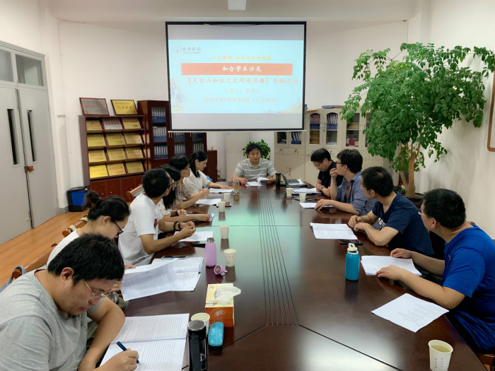 2019年6月6日晚,VSport体育、和合文化研究院共同举办的第26期“和合学术沙龙”在VSport体育一楼“党员之家”举行,屈啸宇博士汇报了《天台和合文化的区域生成和跨域传播》一书书稿。程利伟博士主持并担任主评人。