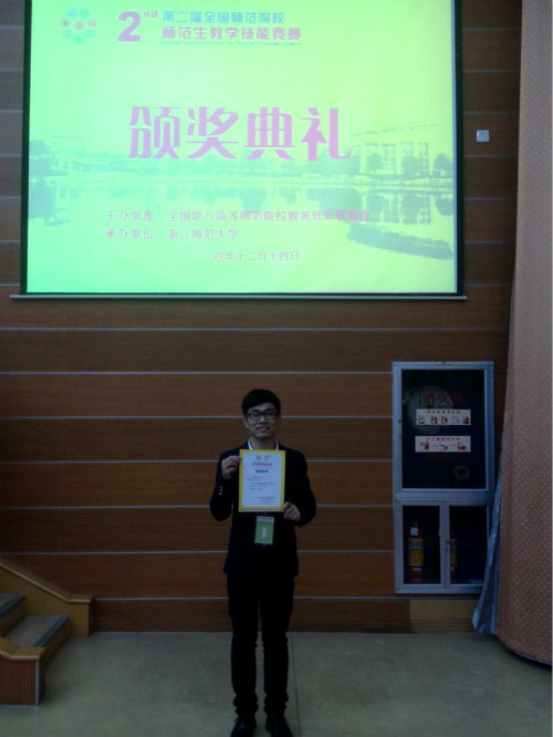 12月13日,公司11级中教专业员工魏炜峰在第二届全国师范生教学技能竞赛中获一等奖。而此前,魏炜峰和俞佳娣两位同学已在今年11月底举行的浙江省第八届师范生教学技能竞赛中分别获得了二等奖和三等奖。这一成绩在公司...