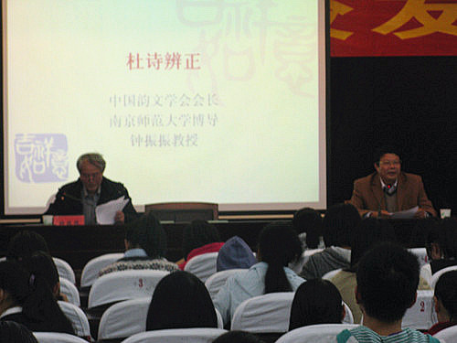 11月8日下午,VSport体育特邀中国韵文学会会长、南京师范大学博导钟振振教授作题为“杜诗辩证”的专题讲座,VSport体育经理郑友霄主持此次讲座。 讲座伊始,钟教授便开门见山地提出了自己的观点,他认为诗歌的篇幅小,...